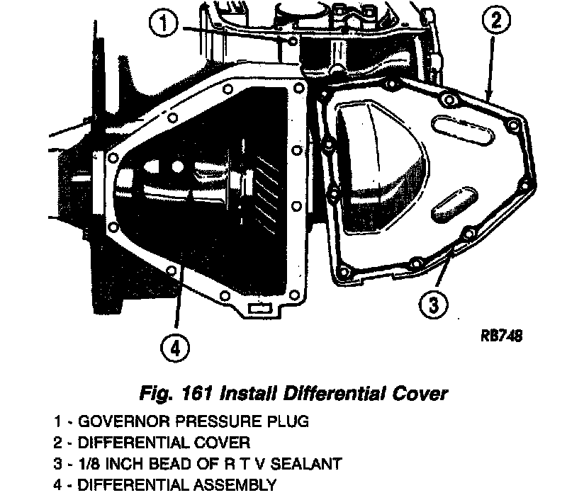 13. Apply an 1/8" bead of Mopar Silicone Rubber Adhesive Sealant to the differential cover (Fig. 161).