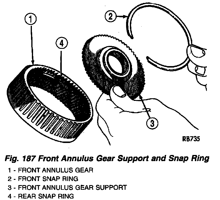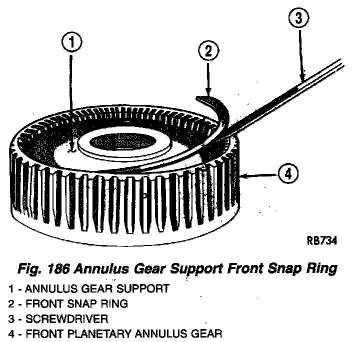 3. Remove annulus gear support and snap ring (Fig. 187).