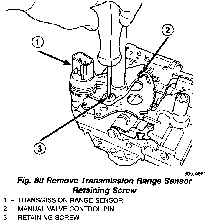 (2) Remove Transmission Range Sensor retaining screw (Fig. 80).