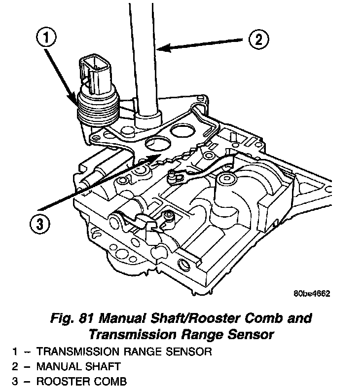 (3) Remove Manual Shaft/Rooster Comb and Transmission Range Sensor (Fig. 81).