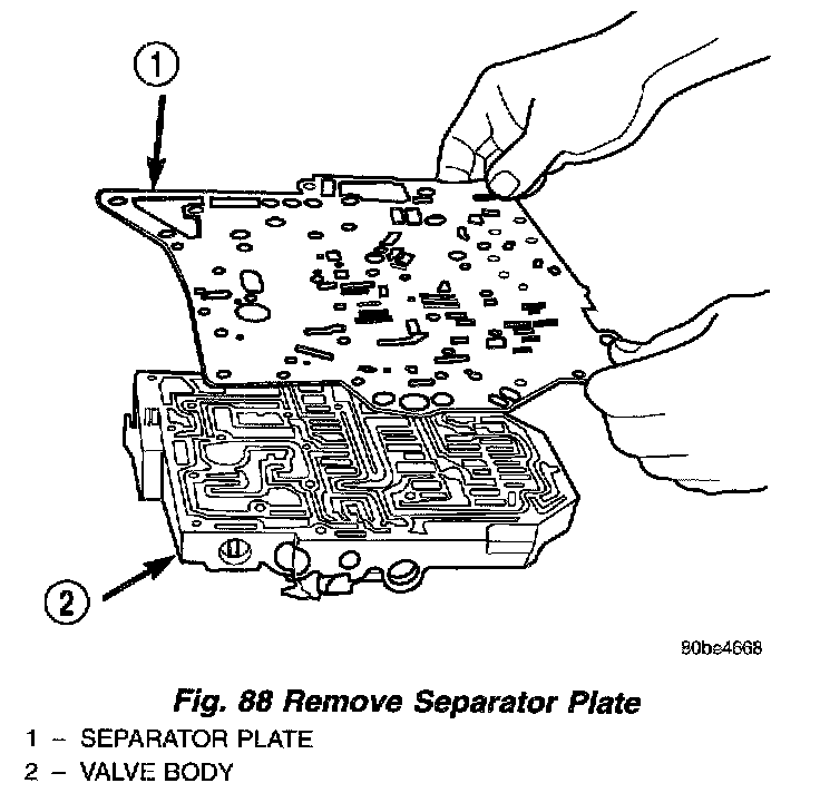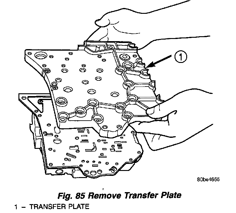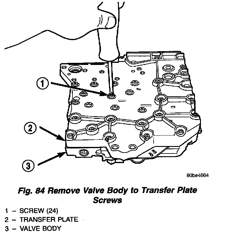 (6) Remove Valve Body to Transfer Plate screws (Fig. 84).