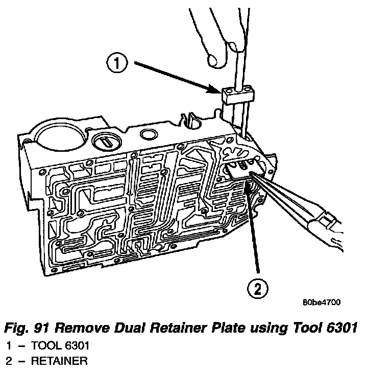(13) Remove dual retainer plate using Tool 6301 (Fig. 91).