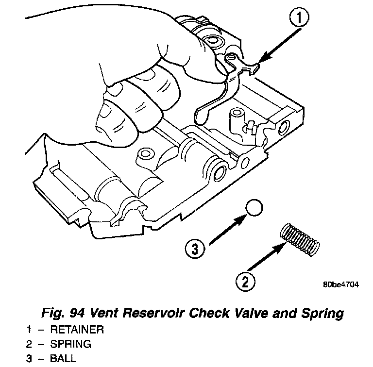 (16) Remove vent reservoir check valve and spring (Fig. 94).