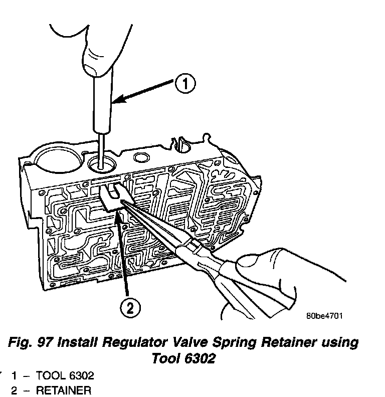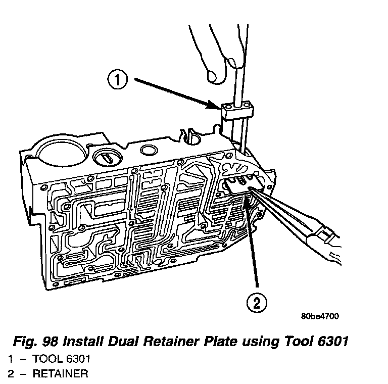 (3) Install dual retainer plate using Tool 6301 (Fig. 98).