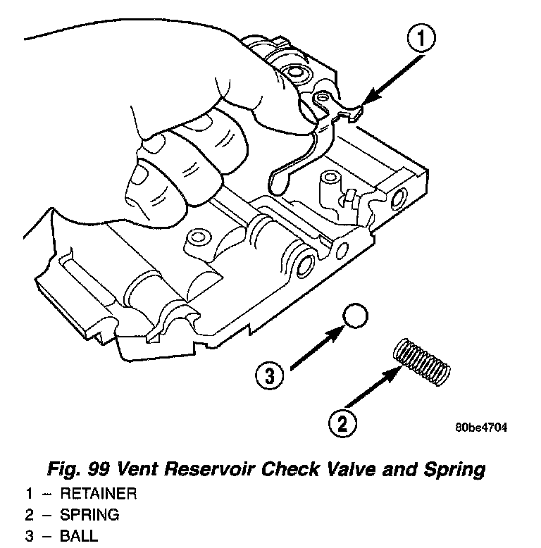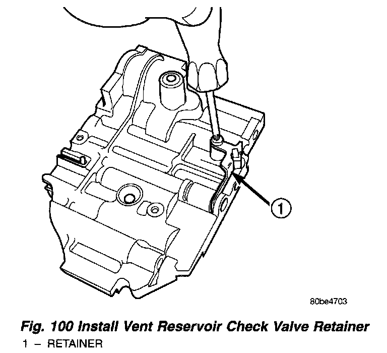 (5) Install the vent reservoir check valve retainer (Fig. 100).