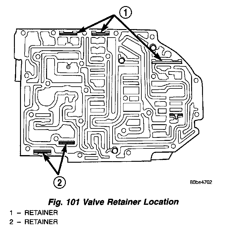 (6) Verify that all retainers are installed as shown in (Fig. 101). Retainers should be flush or below valve body surface.