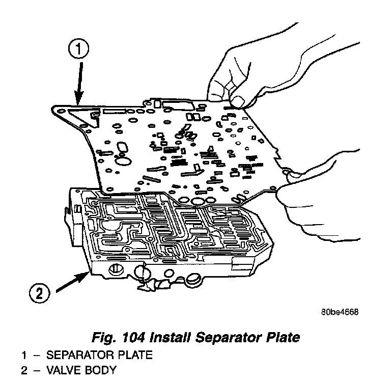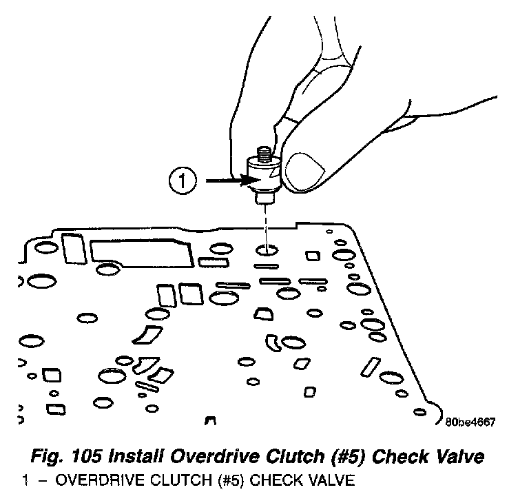 (10) Install the overdrive clutch (# 5) check valve to separator plate (Fig. 105)