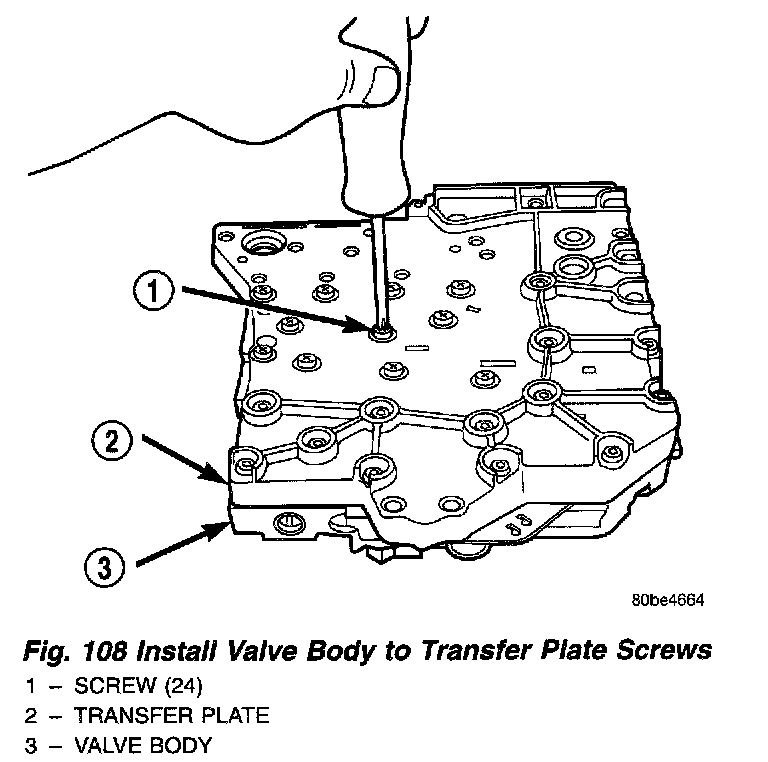 (13) Install twenty-four transfer plate to valve body screws (Fig. 108) and torque to 5 Nm (45 in. lbs.).