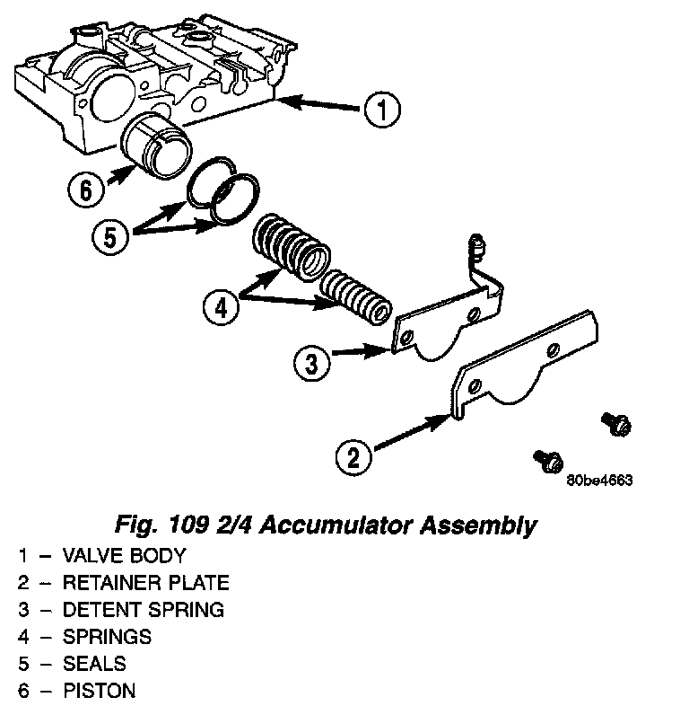 (4) Remove 2/4 Accumulator Retaining Plate (Fig. 82).