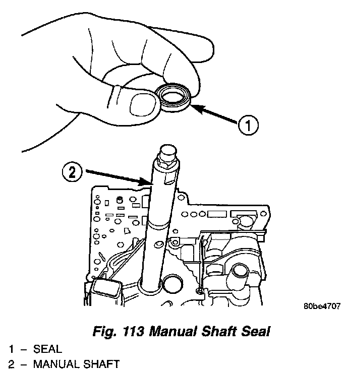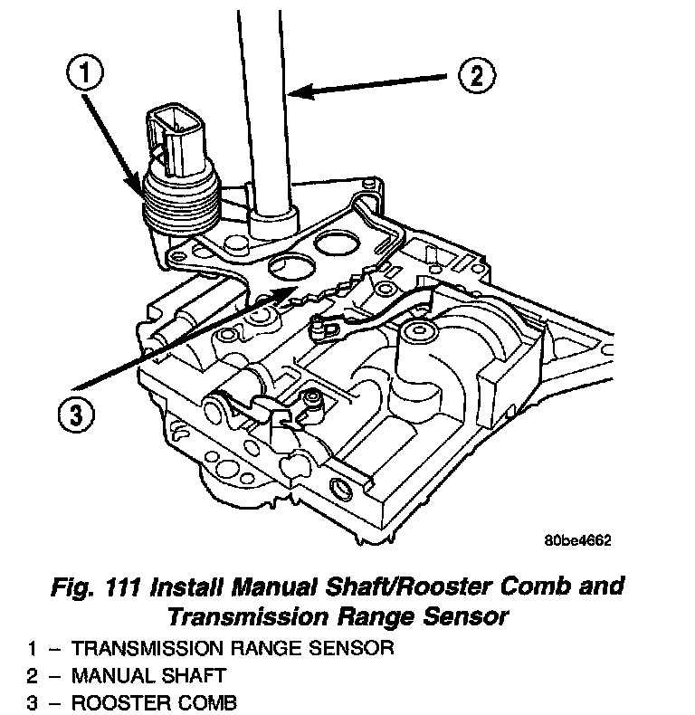 (16) Install Manual Shaft/Rooster Comb and Transmission Range Sensor (Fig. 111).