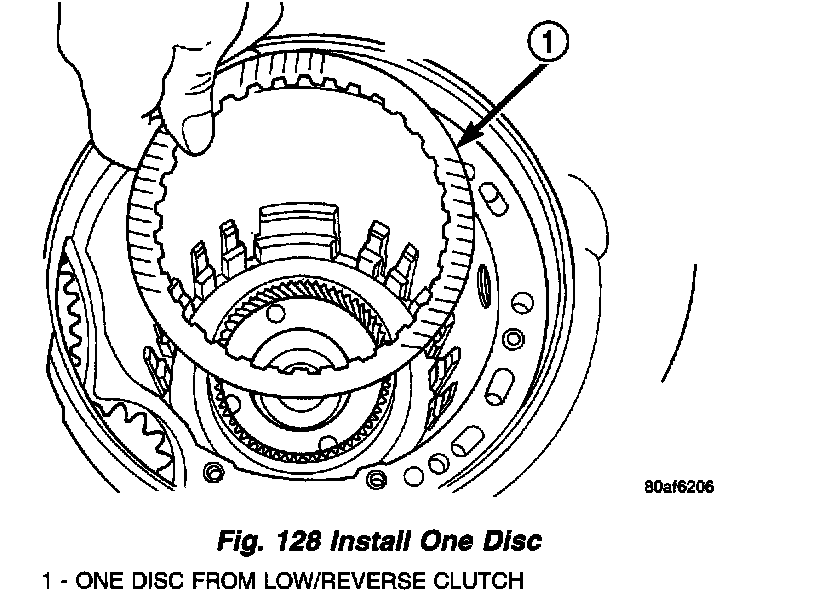 40. Install remaining low/reverse clutch disc (Fig. 128).