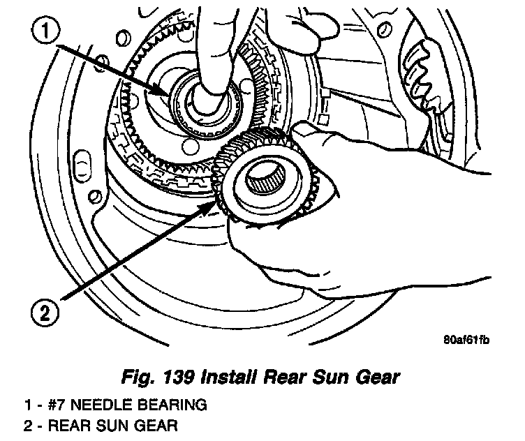 49. Install rear sun gear and # 7 needle bearing (Fig. 139).