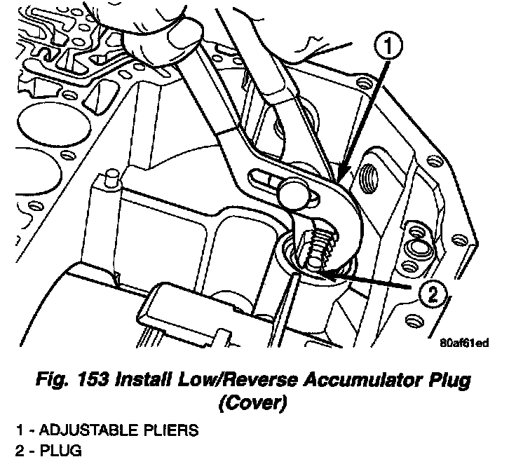 61. Install low/reverse accumulator snap ring (Fig. 154).