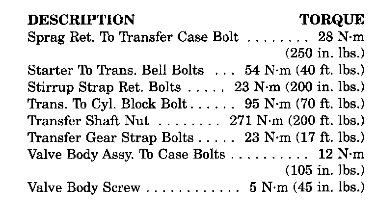 31TH Transaxle Torque Specifications: