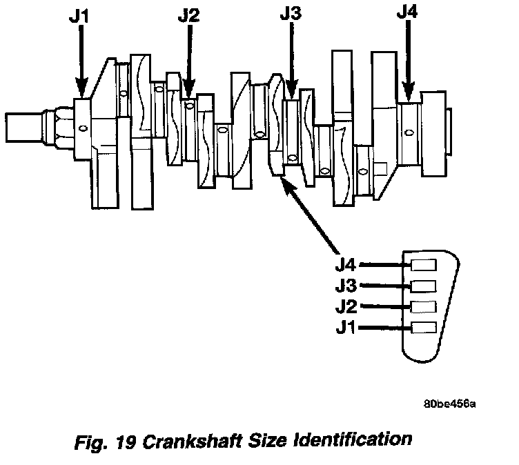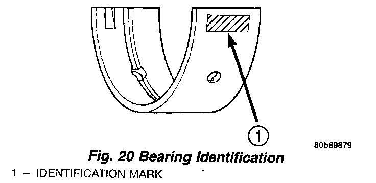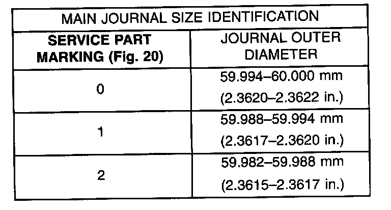 1. Measure the crankshaft journal diameter and confirm its classification from the Main Journal Size Identification Chart. In the case of a bearing supplied as a service part, the identification is embossed at the position show in (Fig. 20).