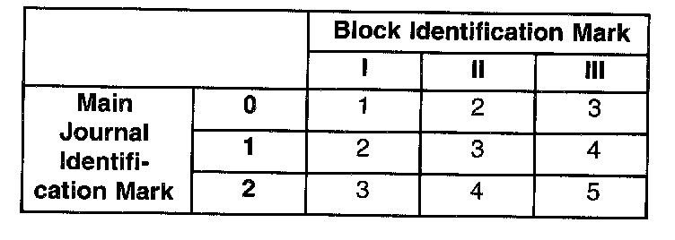 b. If the identification mark for the cylinder block main bore is "II", select the bearing "2" according the chart below.
