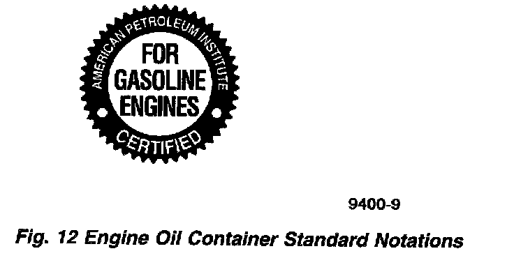Standard engine oil identification notations have been adopted to aid in the proper selection of engine oil. The identifying notations are located on the label of engine oil plastic bottles and the top of engine oil cans (Fig. 12).