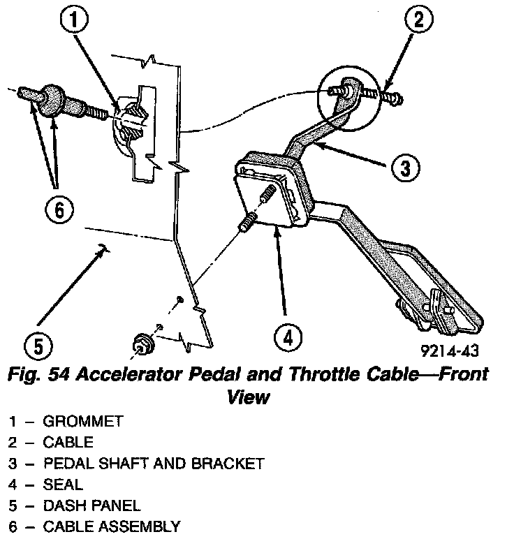 Fig. 54 Accelerator Pedal And Throttle Cable (Front View ):