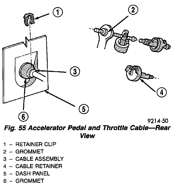 Fig. 55 Accelerator Pedal And Throttle Cable (Rear View):