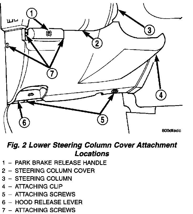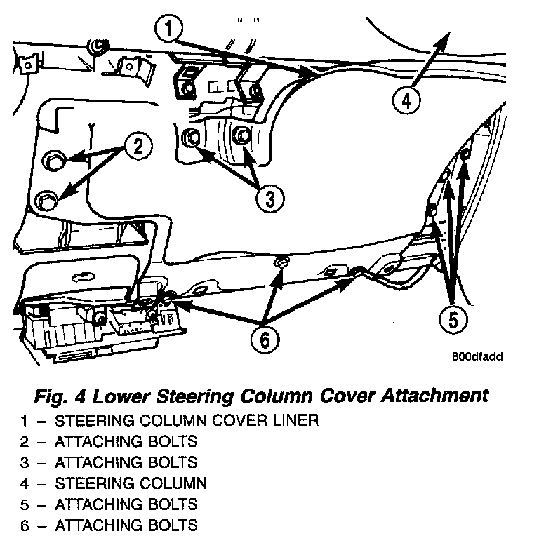 3. Remove the screws attaching the lower steering column cover to the instrument panel. Remove the lower trim panel from the lower instrument panel.