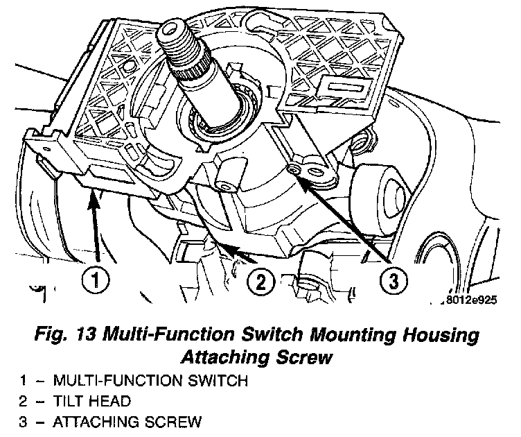 12. Install the multi-function switch on the tilt head of the steering column assembly. Then install screw attaching multi-function switch to tilt head of steering column.