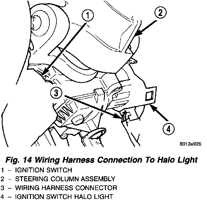 18. Remove the vehicle wiring harness connector from the key cylinder halo light.