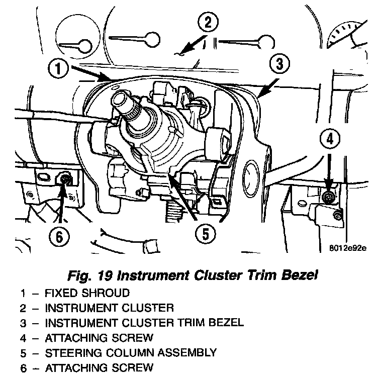 24. Remove the instrument cluster trim bezel from the instrument panel. The trim bezel is mounted to the instrument panel using 2 attaching screws and retaining clips.