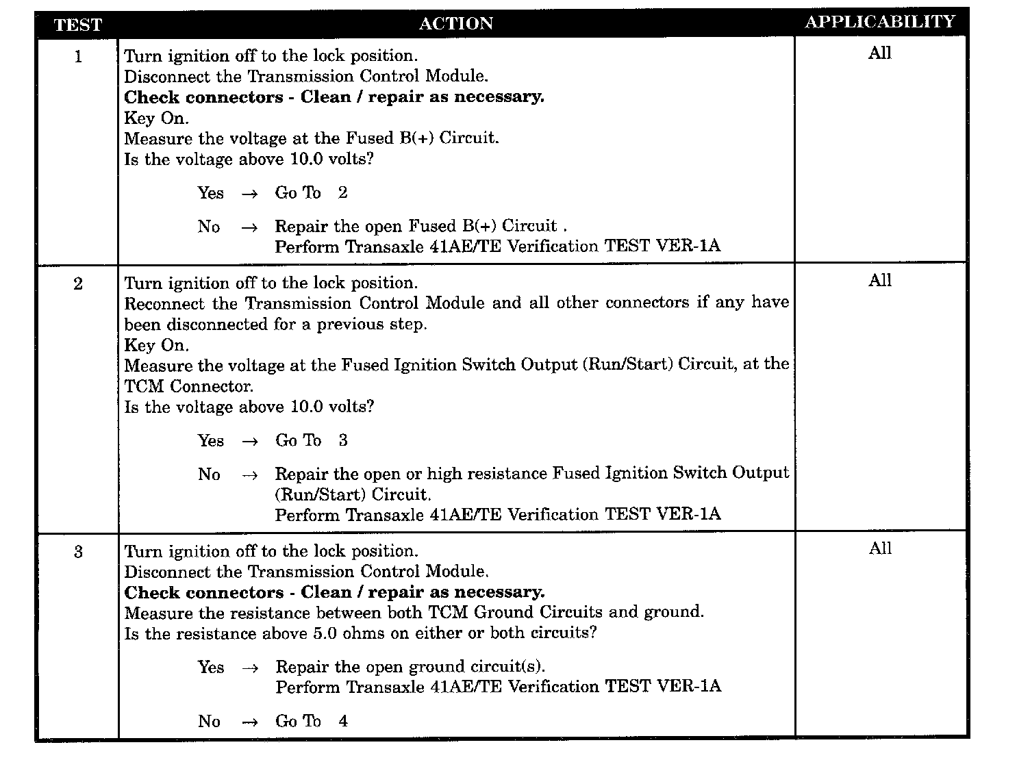 TCM GROUND CIRCUITS OPEN