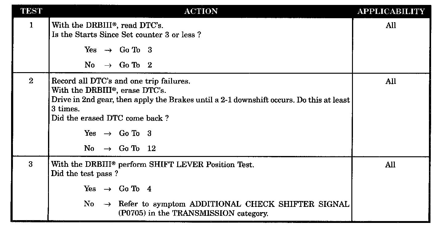 Set Condition: The code is set if three consecutive unsuccessful attempts are made to get into first gear in one given key start.