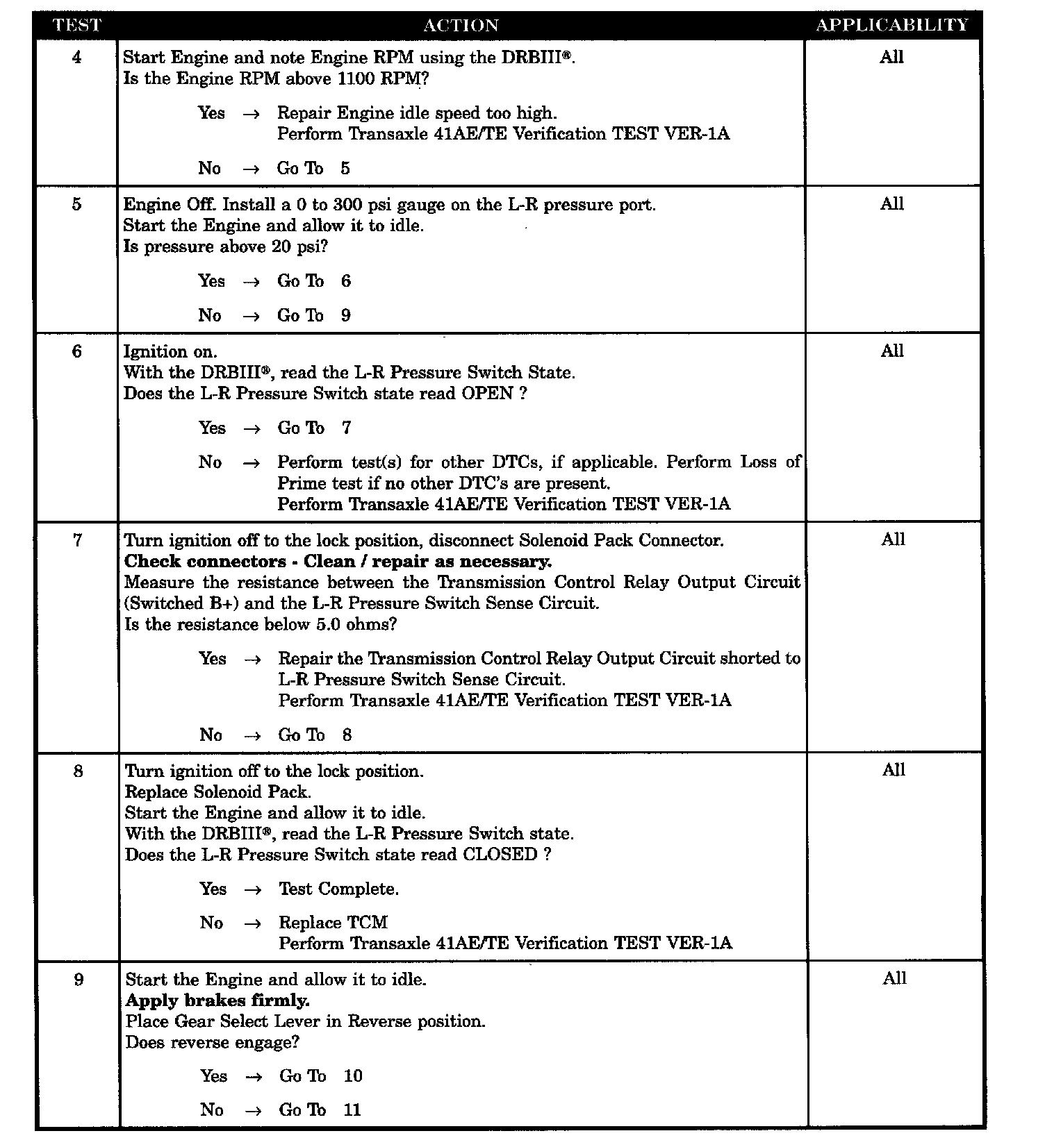 TRANS CTRL RELAY OUTPUT CKT SHRT TO L-R PRES SW SENSE CKT