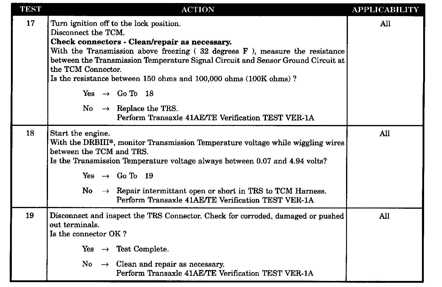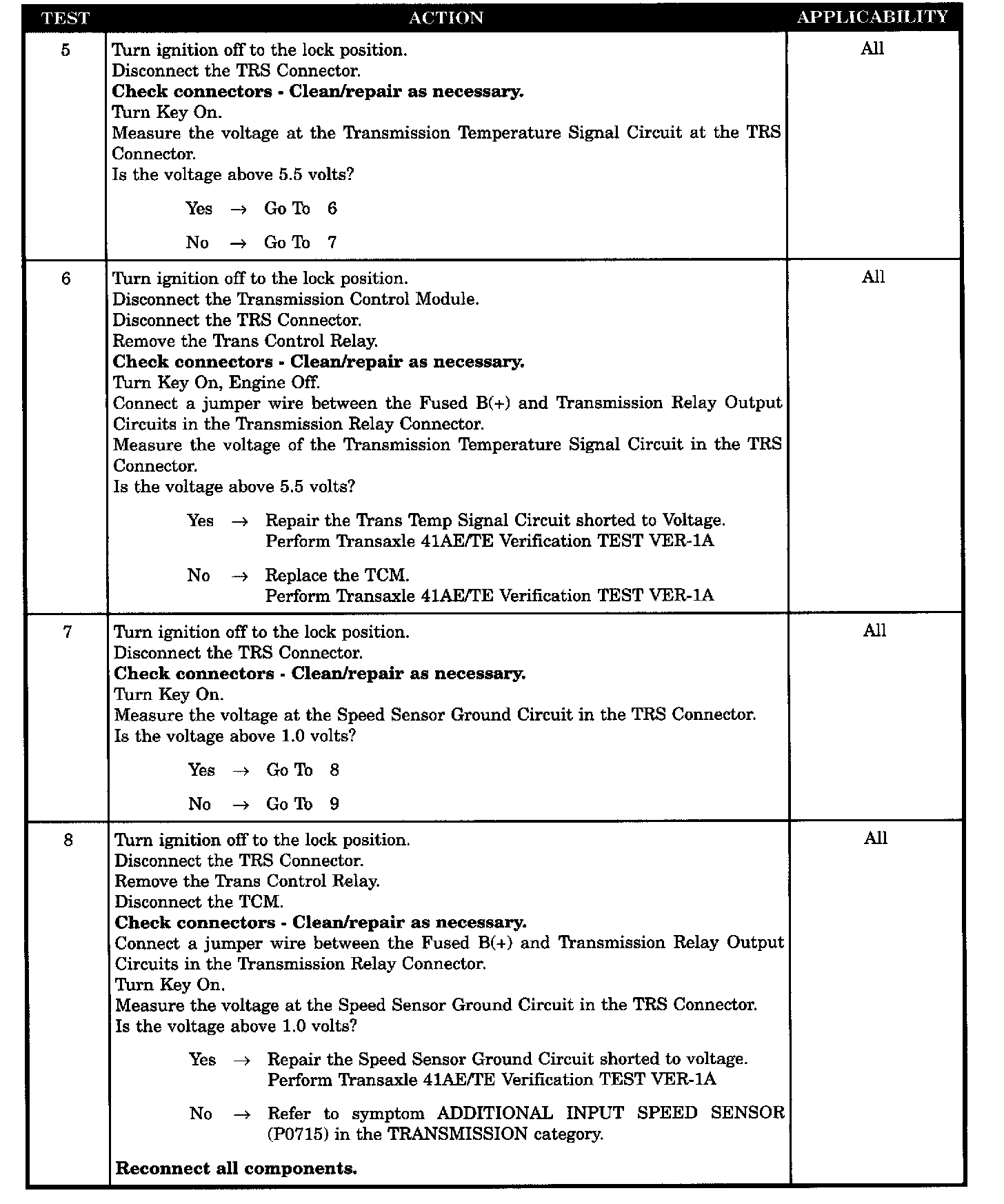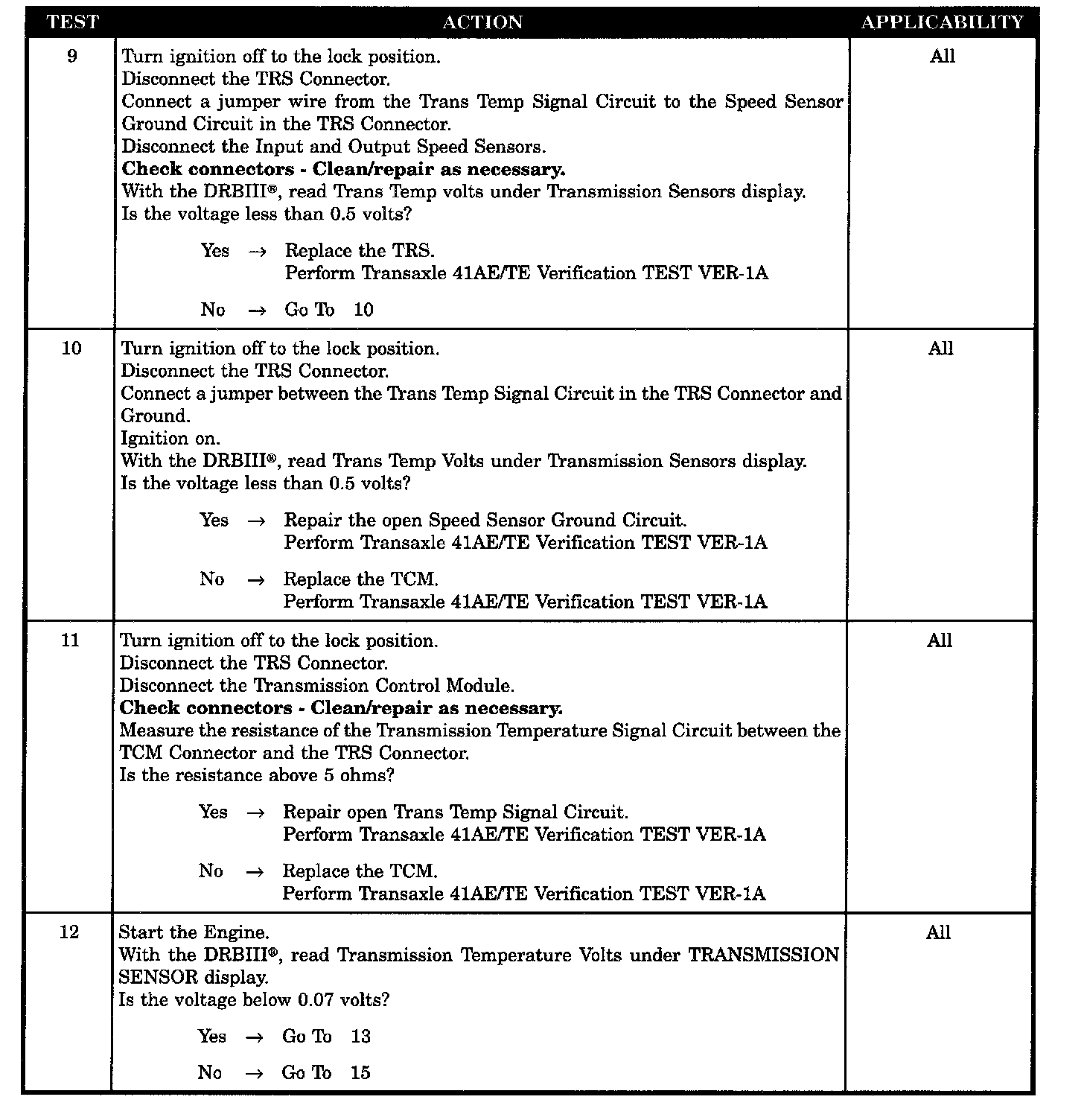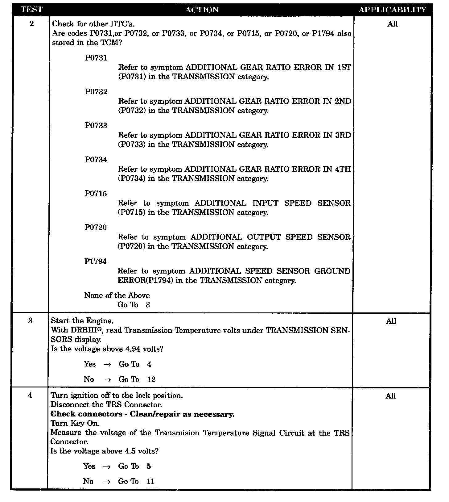 TCM TRANS TEMP SENSOR SIGNAL SHORTED
