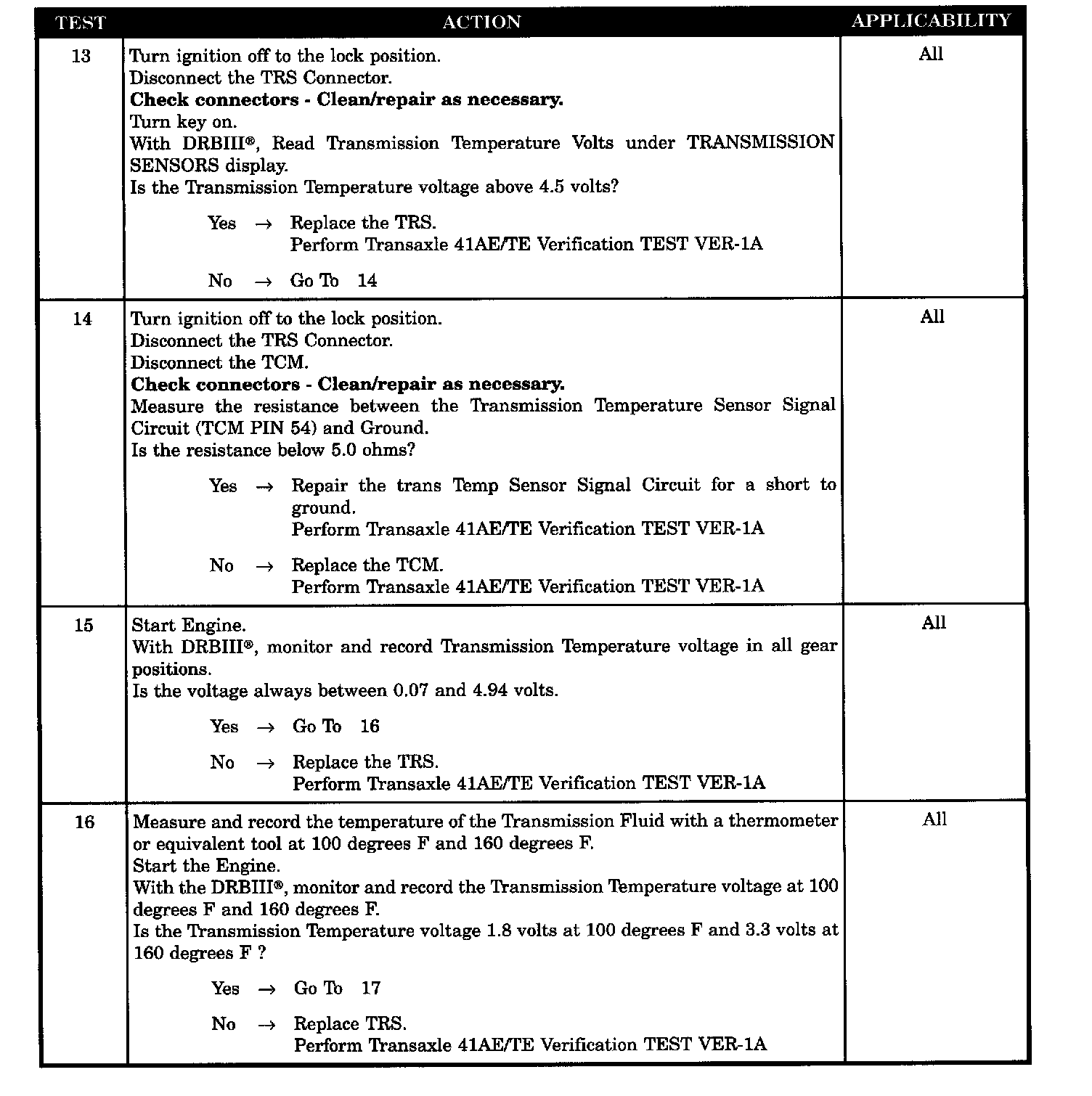 TRANSMISSION TEMPERATURE SENSOR VOLTAGE NOT CORRECT FOR FLUID TEMP