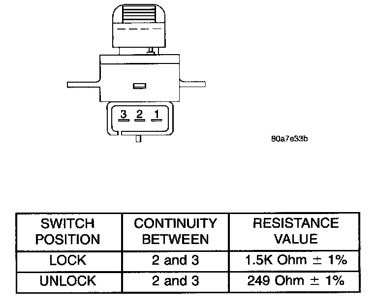 4. Using an ohmmeter, test switch resistance between Pins 2 and 3. Refer to Door Lock Switch Test.