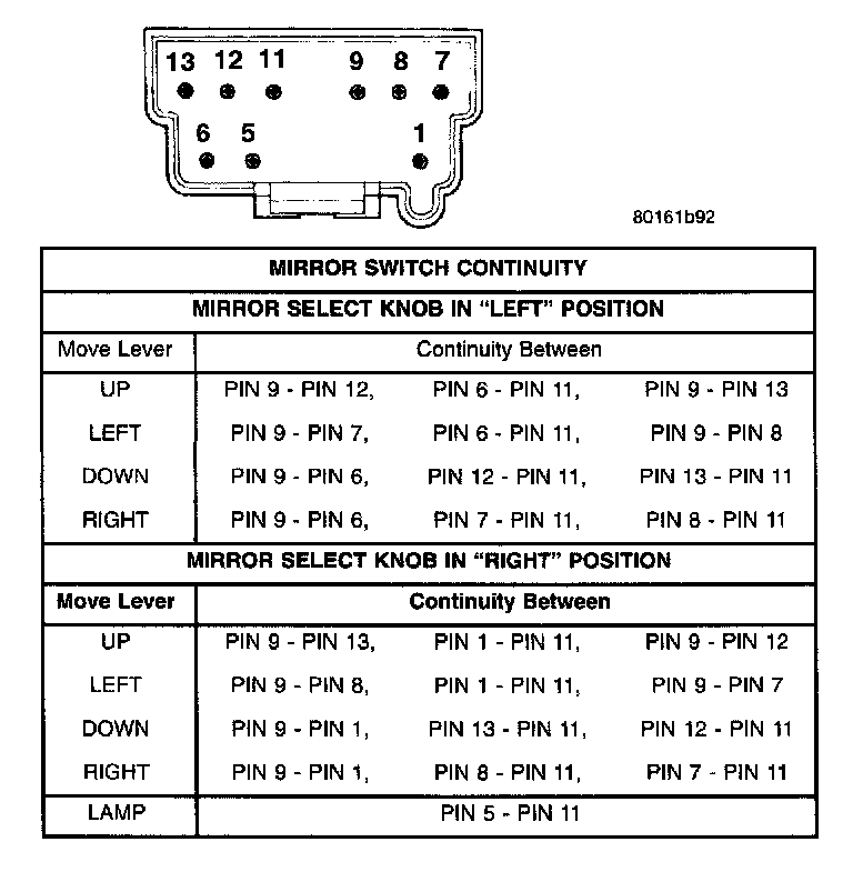 1. Remove power mirror switch.2. Disconnect wiring harness at switch connector.