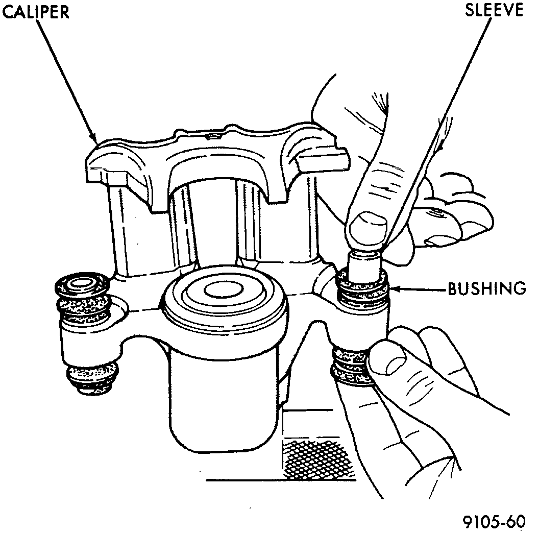 The double pin caliper uses a sealed for life bushing and sleeve assembly. If required this assembly can be serviced using the following procedure.