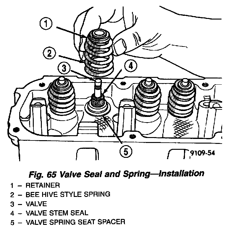3. Install valve spring seat spacer on head (Fig. 65).