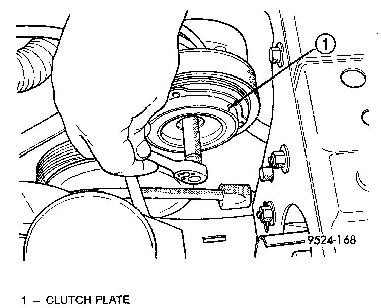 CAUTION: Do not use screwdrivers between the clutch plate assembly and pulley to remove front plate as this may damage the front plate assembly.