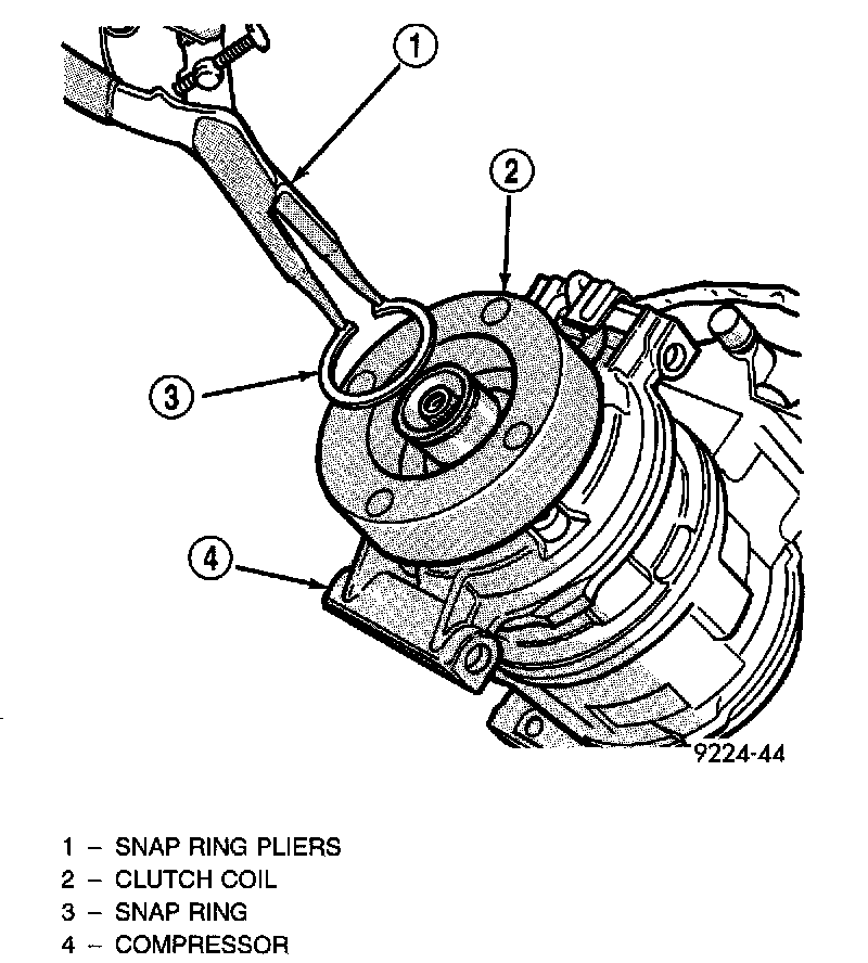 5. Remove snap ring retaining field coil onto compressor housing. Slide field coil off of compressor housing.