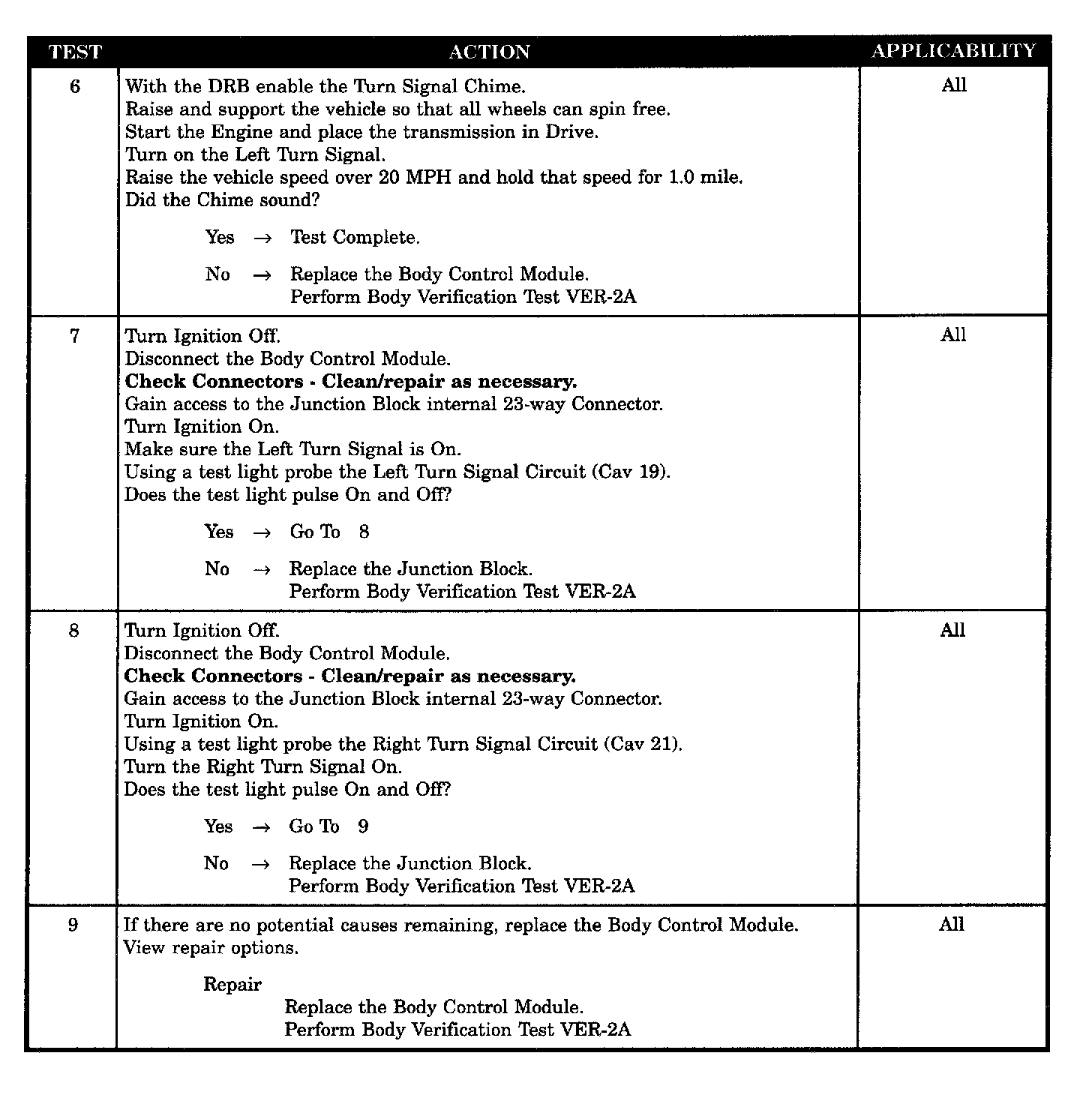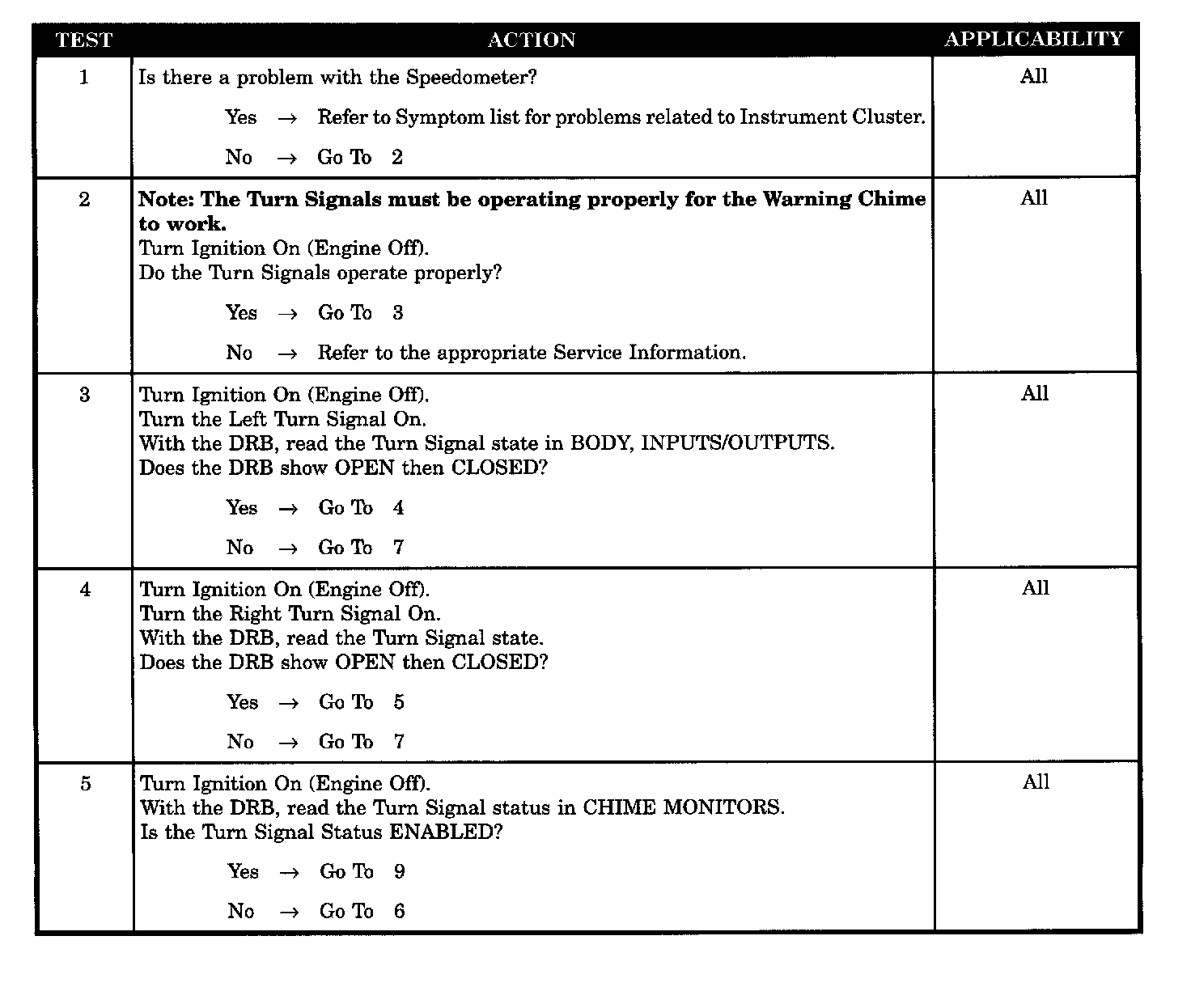 - Chime Inoperative - Turn signal on for 1 mile