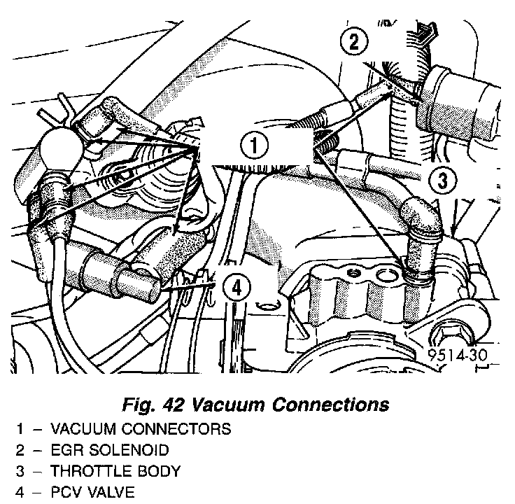 7. Remove vacuum hose harness from throttle body and intake manifold (Fig. 42).