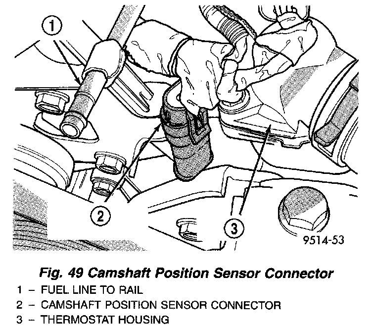 18. Disconnect camshaft position sensor (Fig. 49) and engine coolant temperature sensor.
