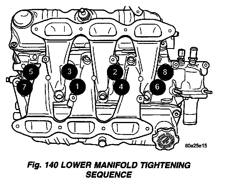 Tighten intake manifold bolts to 12 Nm (105 in. lbs.) following torque sequence shown.