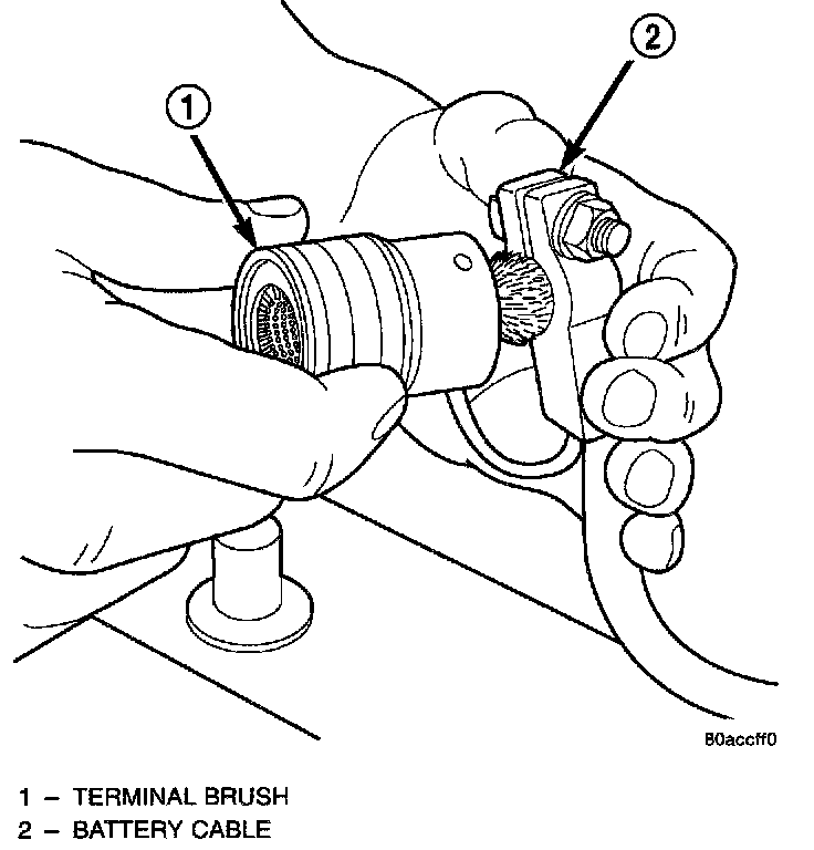 7. Clean battery cable clamps with a battery terminal cleaning tool. Replace cables that are frayed or have broken clamps.