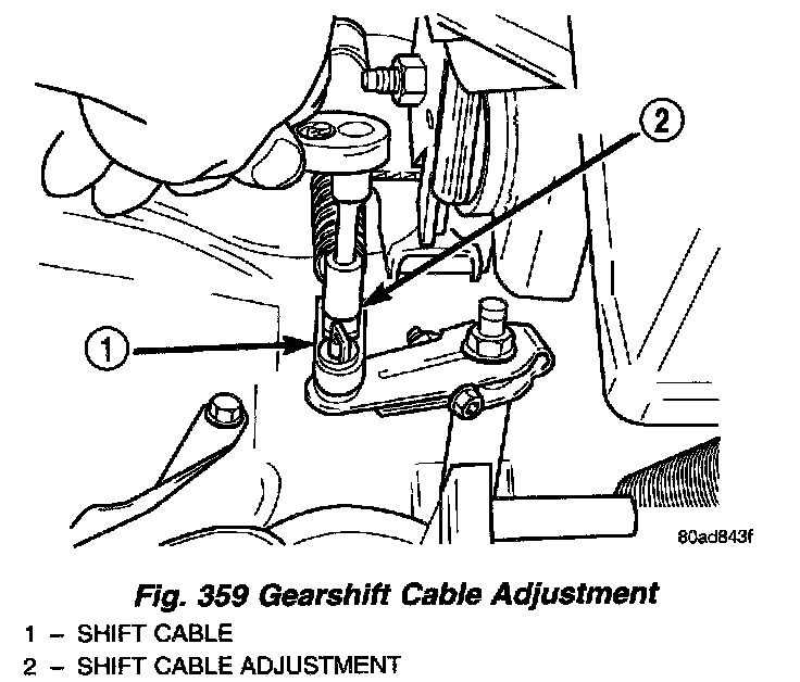 (3) Loosen the cable adjustment screw at the transaxle operating lever (Fig. 359).