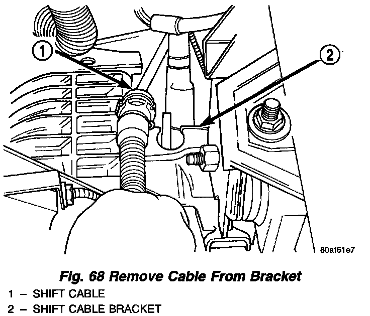 (3) Squeeze grommet clips and remove cable at transaxle bracket (Fig. 67) (Fig. 68).