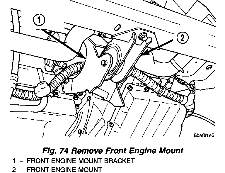 (19) Remove front engine mount insulator and bracket (Fig. 74).