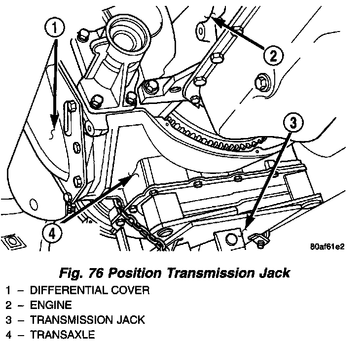 (23) Position transmission jack securely under transaxle (Fig. 76).