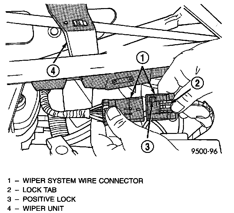 5. Disconnect the positive lock on the wiper unit wire connector.