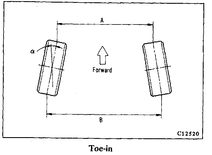 Toe-in (B-A) 4 mm (.16 in.) Toe-in to 2 mm (.08 in.) Toe-out