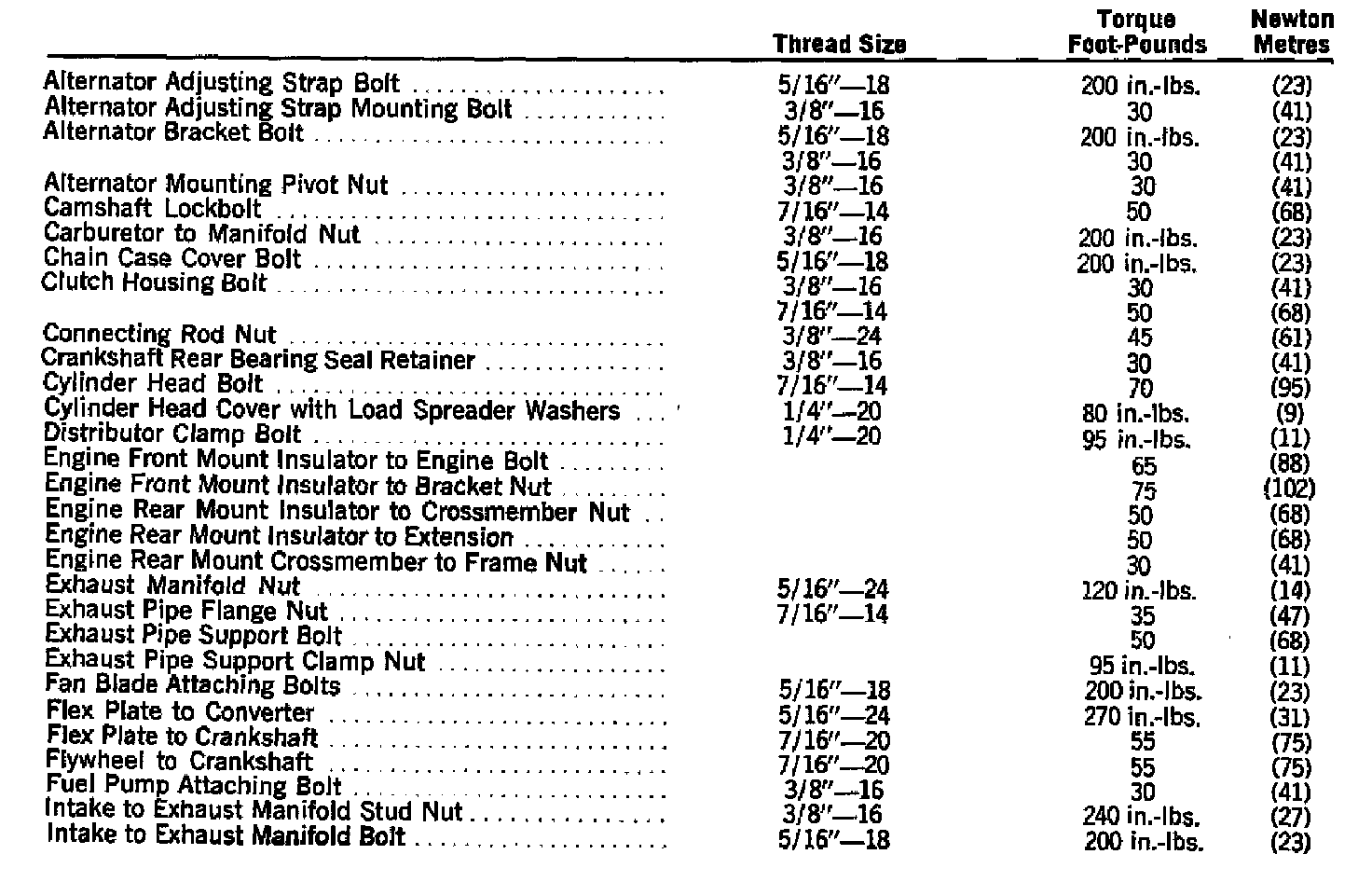 Tightening Specifications